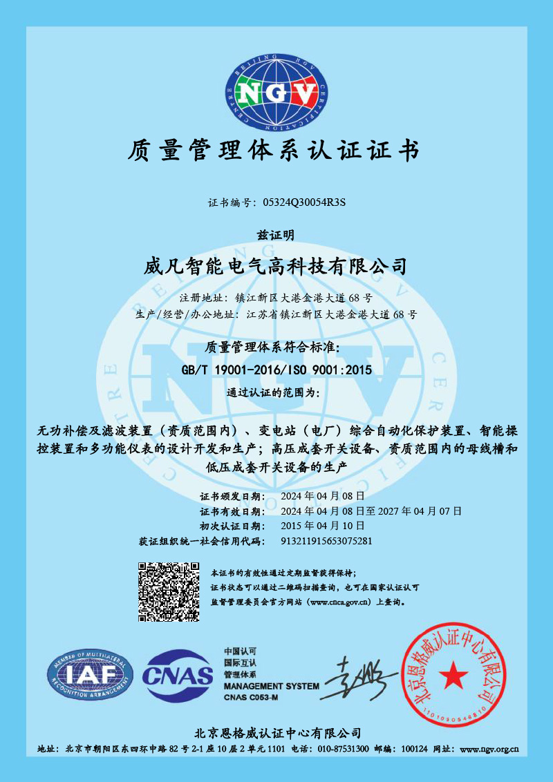 威凡智能電氣高科技有限公司主要業(yè)務(wù)版塊包含:儲能事業(yè)部、電能質(zhì)量事業(yè)部、成套電氣事業(yè)部、智能母線事業(yè)部、自動化事業(yè)部、新能源開發(fā)及電力工程總包公司等,曾多次被評選為國家級高新技術(shù)企業(yè)。